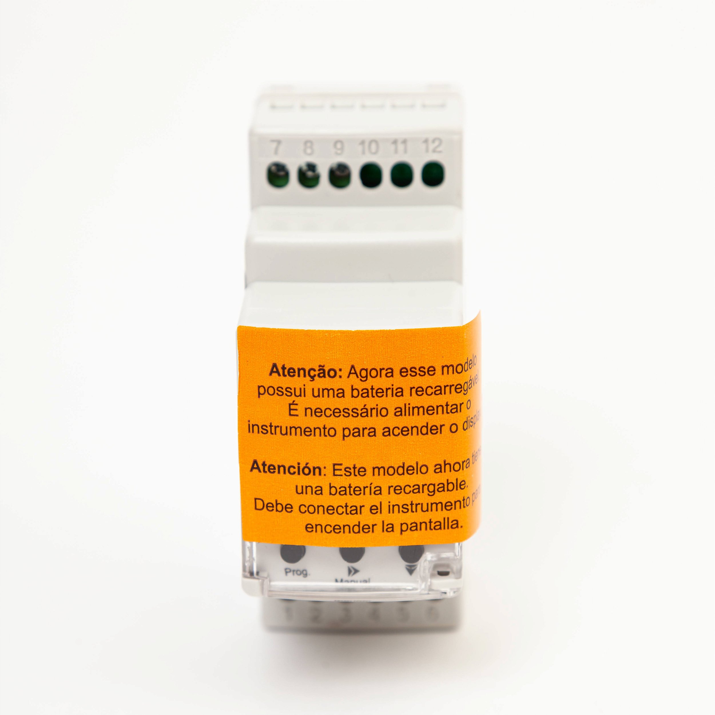 Programador Horário BWT-40HR-P-REC 100 A 240vca coel 48 a 63hz - BATERIA RECARREGÁVEL BWT-40HR-P-REC Programador Horário O interruptor horário BWT40HR possui uma saída a relé para comando de equipamentos de acordo com os programas estabelecidos. É possível configurar até 40 programas (20 liga e 20 desliga) para comandar o equipamento conectado à saída do instrumento, sendo que o intervalo mínimo entre programas é de 1 minuto. Também possui a função de pulso que possibilita a configuração de um tempo de 1 a 59 segundos para aplicação em sinaleiros. Aplicações Automação Bancária,Bebedouros,Boiler,Comedouros,Equipamentos para Avicultura,Iluminação,Irrigadores,Outdoors,Piscinas,Refrigeração,Sirenes,Vitrines Características - Alimentação: 100 a 240 Vca. - BWT40HR – 1 saída relé SPDT 16 A @ 250 Vca. - Acionamento manual/automático da(s) saída(s). - LED para indicação do estado do(s) relé(s) de saída. - LED para indicação do instrumento alimentado. - Função de horário de verão. - Função randômica. - Caixa em ABS V0, 35 x 90 mm, padrão disjuntor, com fixação por trilho DIN 35 mm. - 40 memórias para programação (20 liga + 20 desliga) ou 40 programas de pulso com ajuste de 1 a 59 seg (sirene). -Bateria Recarregável